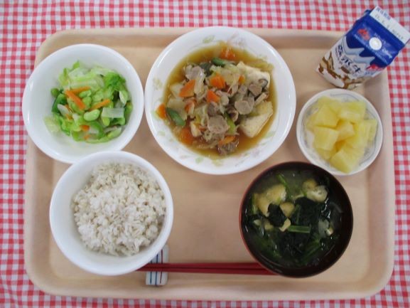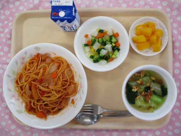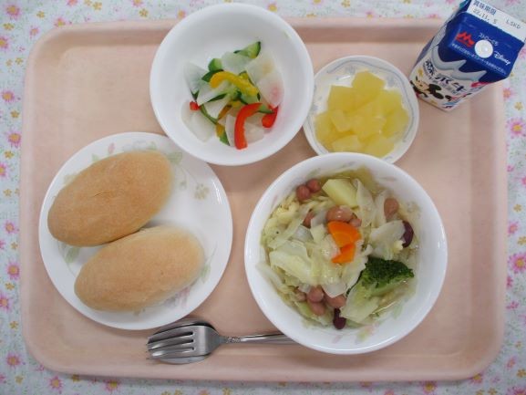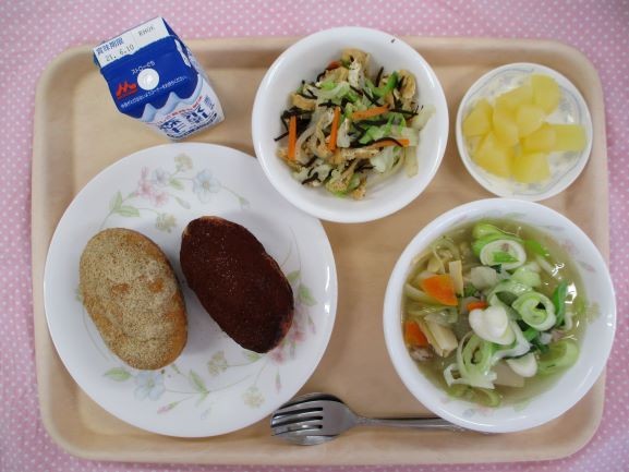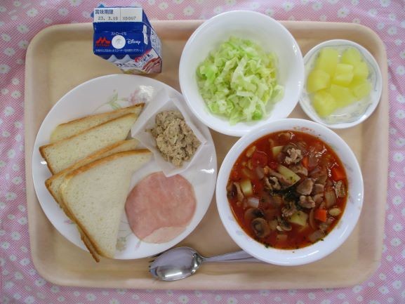 今日の給食は、ドイツ大使館との国際交流会にあわせて、ドイツ料理を提供しました😋ドイツ料理は、地域ごとの特色が豊かで、ソーセージをはじめとした肉料理やじゃがいもを中心とした料理が多いです。今日の主菜であるカリーブルストは、焼いたソーセージにケチャップやカレー粉で作ったソースをまぶした、ベルリンの名物です!甘辛い味付けで、ご飯がよく進みます🍚ザワークラウトは、キャベツを乳酸発酵させて作るドイツ版の漬け物です。肉料理の付け合わせの定番で、肉料理でこってりした口をさっぱりさせてくれます。アイントプフは、ドイツの家庭料理で、様々な具材を1つの鍋で調理したという意味があります。ドイツのお話を聞いた直後の給食だったので、みなさん楽しんで食べてくれていました✨